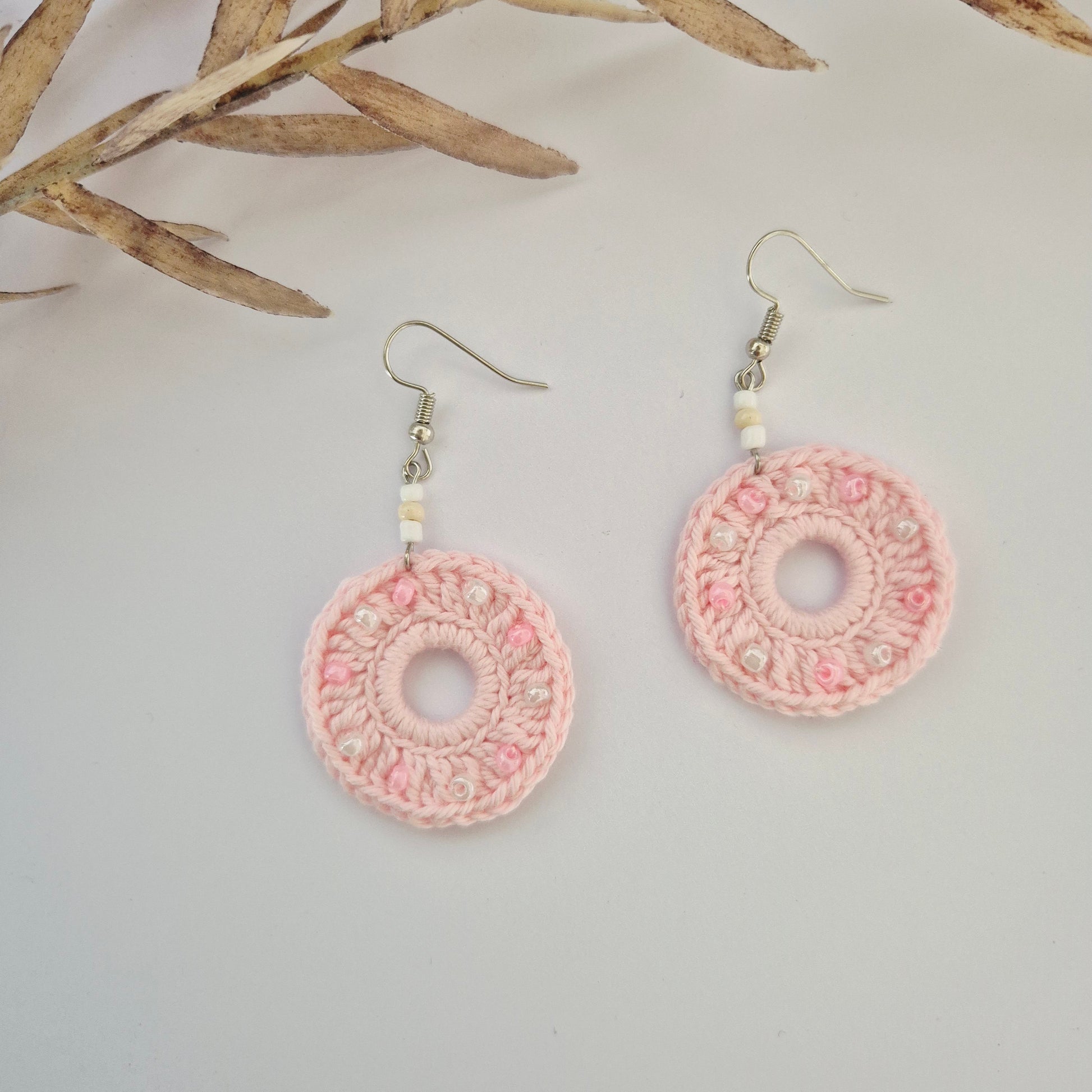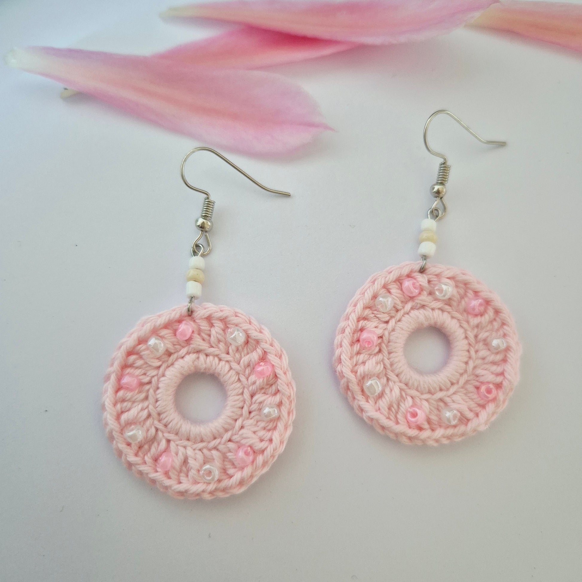 Discover the charm of handmade artistry with these delicate crochet earrings. Each pair is lovingly crafted by hand, featuring a soft and feminine pinky style that adds a touch of elegance to any outfit.
