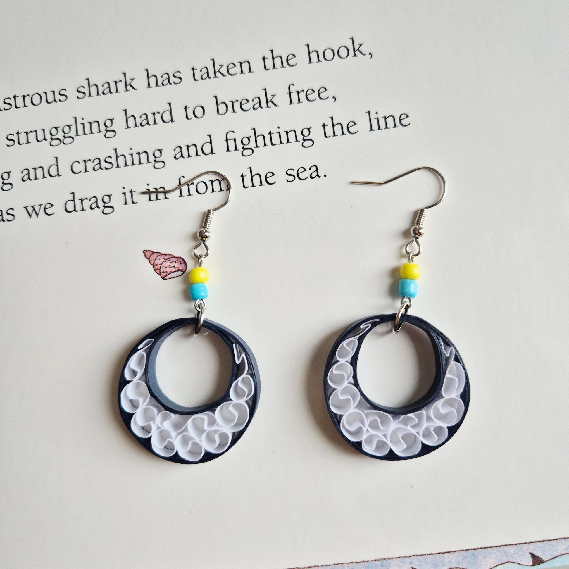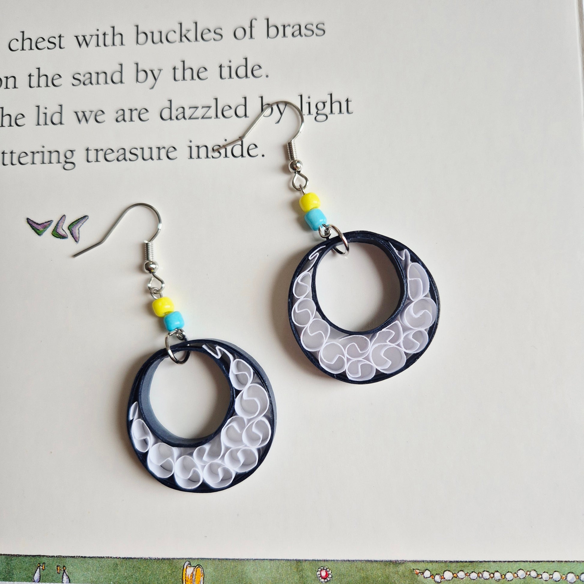 Delicate and romantic, these handcrafted paper quilling earrings feature an intricate lacework design that captures the eye with every movement.