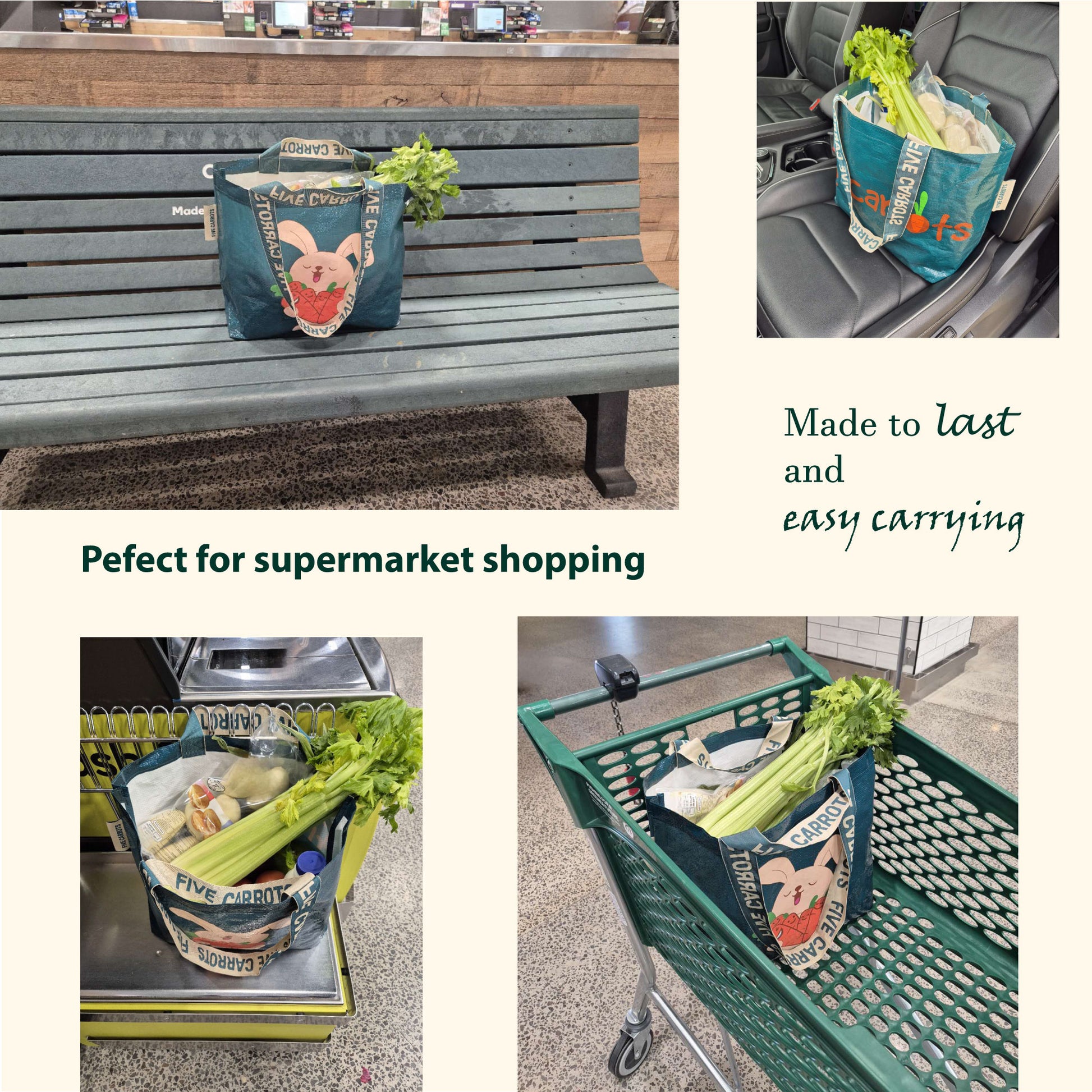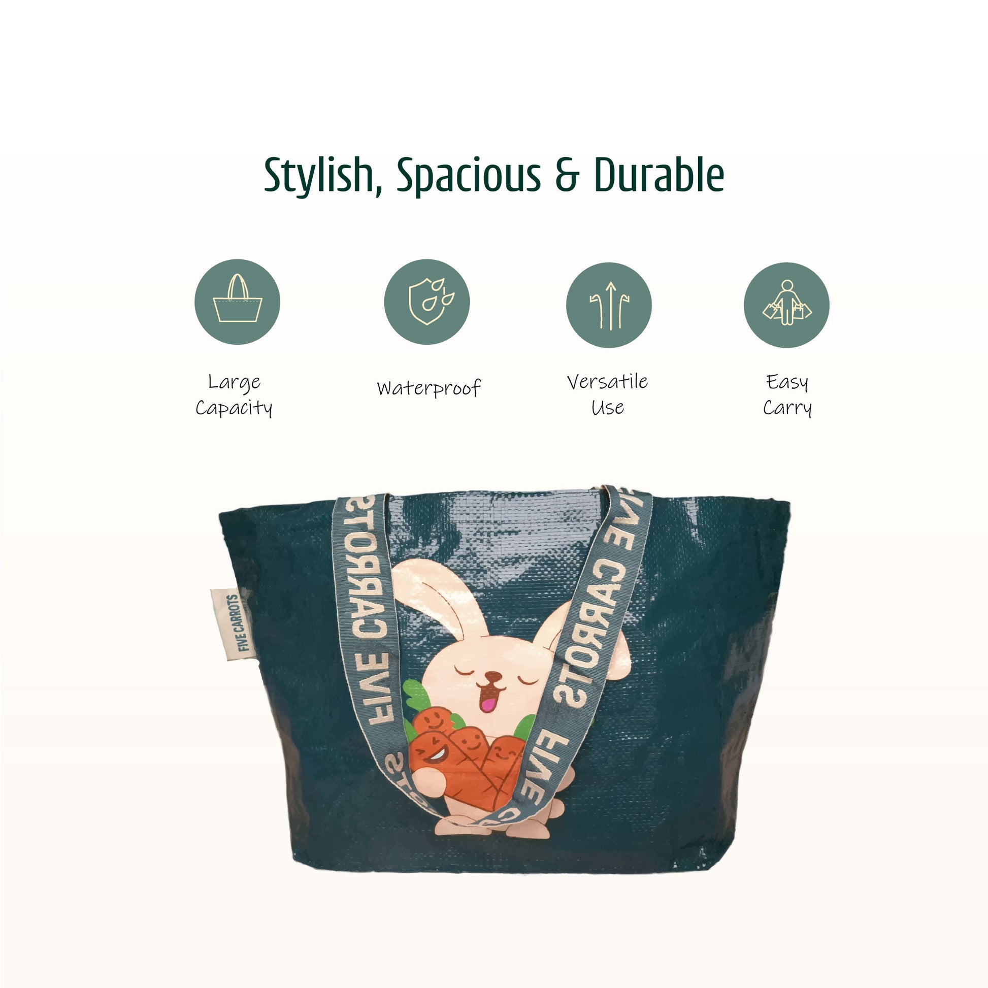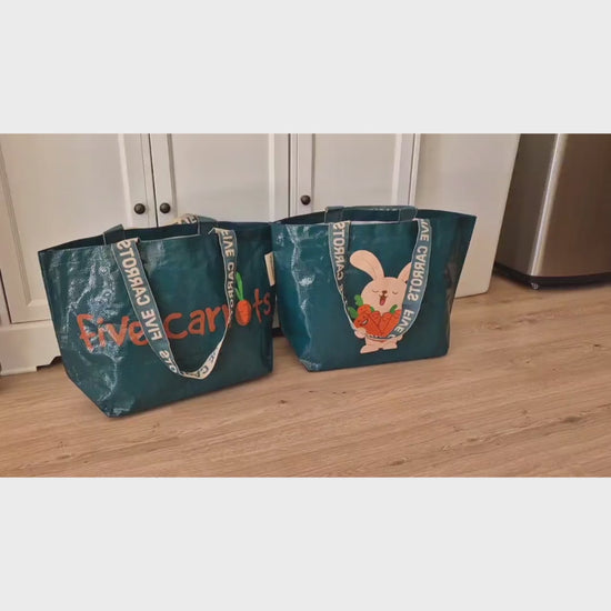 - Comes with TWO durable woven brand name FIVE CARROTS polyester handles. 4CM wide strap handles offer comfortable carrying by hand or over-shoulder, even with heavier loads